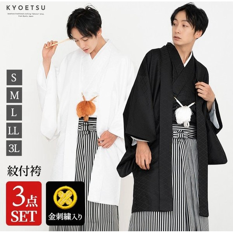 紋付3点 紋付羽織袴 メンズ 2colors 成人式 袴 セット 羽織 着物 袴 黒地紋 白地紋 男性 男 紋付袴 紋付き袴 結婚式 卒業式の通販はau Pay マーケット Kyoetsu Honten Au Pay マーケット店